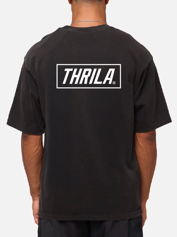 The Thrila Heavy Tee, crafted from 100% carded cotton for durability and comfort. With a heavy 240 GSM weight features a boxy oversized fit, dropped shoulders, shorter body length and twin-stitched wide neck ribbing. Built to last for a timeless, relaxed look.