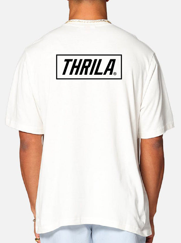 The Thrila Heavy Tee, crafted from 100% carded cotton for durability and comfort. With a heavy 240 GSM weight features a boxy oversized fit, dropped shoulders, and twin-stitched wide neck ribbing. Built to last for a timeless, relaxed look.